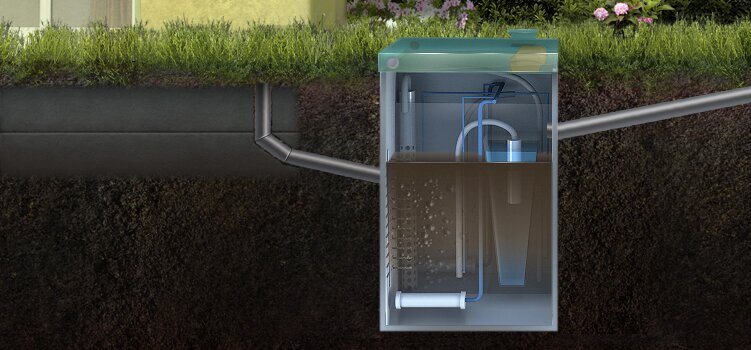 Ориентирована на ежесуточную переработку стока не превышающую 1,6 метра кубических в сутки, что эквивалентно восьми пользователям. Максимальный пиковый сброс хозяйственно-бытовых сточных вод в приемную камеру очистного сооружения рассчитан на 440 литров и будет полностью переработан ориентировочно в течение 2-х часов. Это говорит о том, что при неправильном подборе станции очистки, вода на выходе скорее всего не будет соответствовать заявленным в сопроводительных документах показателям, а так же, может иметь неприятный запах и окрашенный цвет. Септик оборудован емкостью для аккумуляции очищенной воды внутри и дренажным насосом, осуществляющим принудительный сброс по мере накопления в специальную водоотводящую канаву или дренажную систему. Канализационная труба при входе в аэрационную станцию должна залегать не глубже 85 см от уровня земли. Как и прежде на поверхности мы будем наблюдать компактную крышку зеленого цвета для контроля работоспособности и регламентных сервисных мероприятий указанных в техническом паспорте на продукцию. При принятии решения по установке данной модификации есть возможность установить ванну небольших размеров или две душевые кабины.